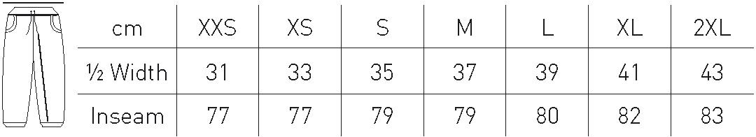 Linningen är i 2x2 ribb med elastan med bred resår innanför ribben. Bindsnöret hålls på plats i en löpande gång mitt på revbenen.