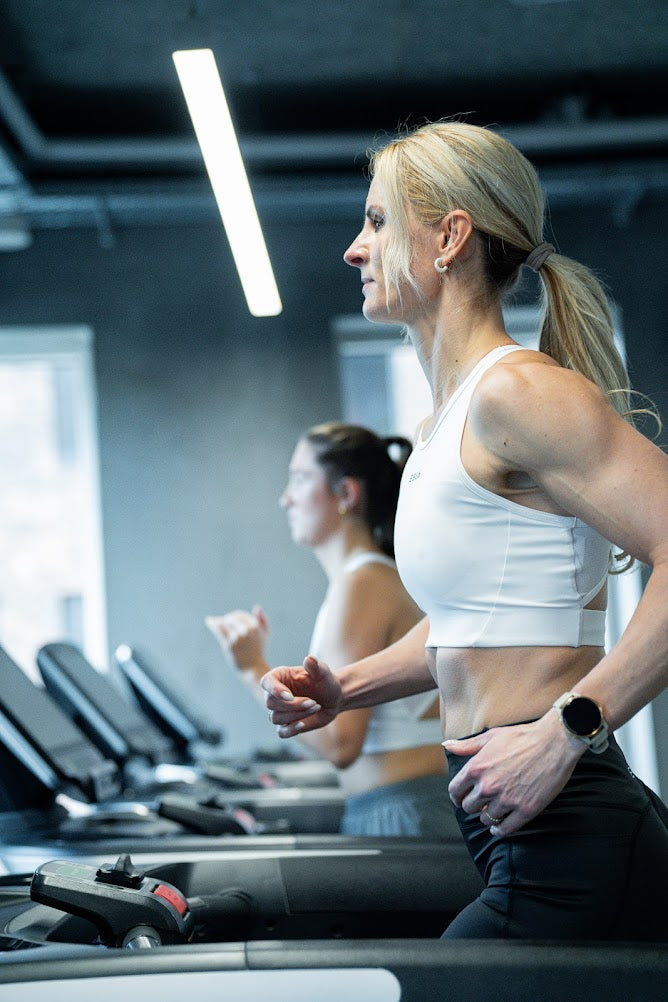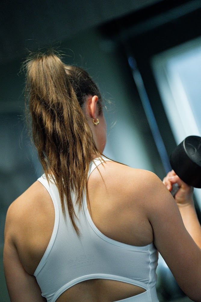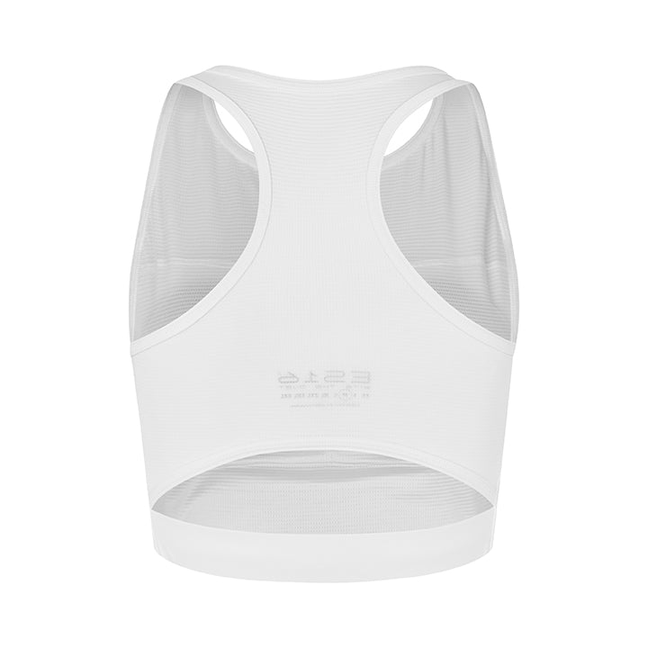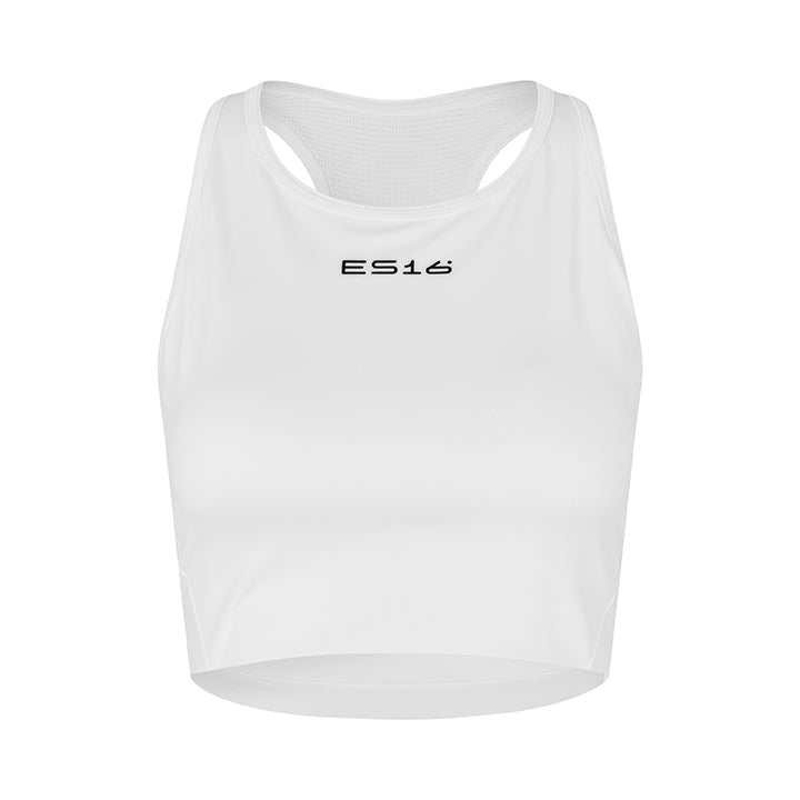 "ES16 sport-bh är en lyxig och bekväm bh med vackra detaljer som elegant framhäver den feminina formen. Den höga halsringningen, racerbacken och det breda elastiska bandet i midjan ger både stil och stöd, så att du kan känna dig bekväm under varje träning."