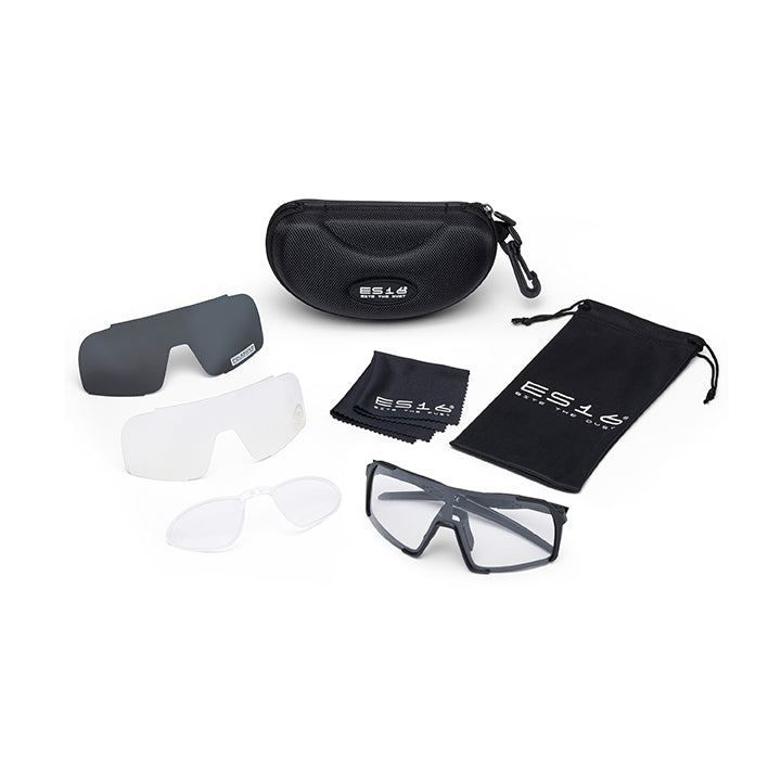 Premiumtillbehör, Komplett Skydd: När du köper ES16 Enzo cykelglasögon får du mer än bara ett par glasögon. Du får ett komplett skyddspaket, inklusive ett robust Hard Case-fodral för säker förvaring under transport, en ultramjuk ES16-trasa för att hålla dina linser kristallklara, och en praktisk ES16-glasögonpåse för att hålla dina glasögon säkra och lättillgängliga.