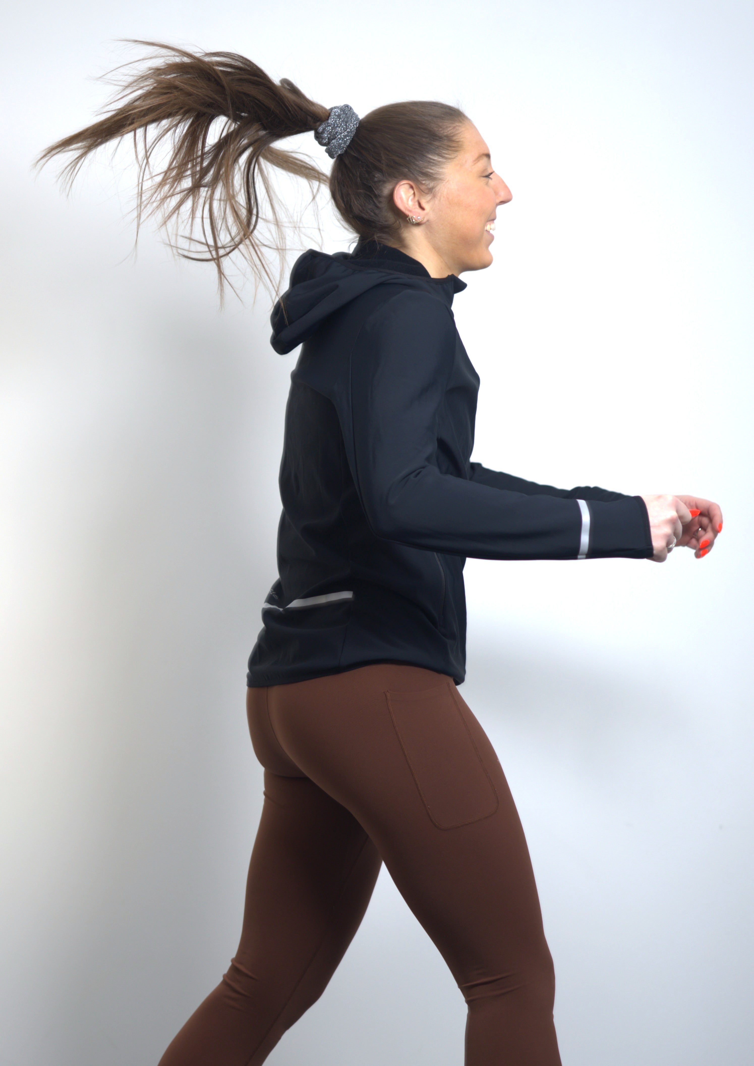 Den integrerade huvan är utrustad med elastik så att den sitter stadigt under löpning i vind och kyla och skyddar effektivt mot drag runt huvudet och öronen. Dragkedjan är bred, slitstark och från YKK, med skydd i toppen för extra komfort.