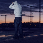 Rippningen i botten och ärmarna är en 2x2 ribb bomull/elastan vi har lagt till elastan i ribben för att ge den mer flexibilitet och en ribb med elastan håller sig snyggare efter tvätt.