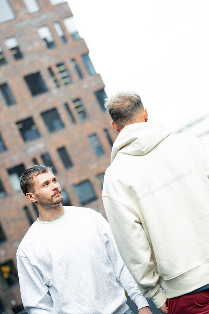 Tröjan har en känguruficka som går ner över revbenen, den gör fickan lite större och den ger tröjan en fin detalj som du inte ser på våra andra tröjor . Fickan och ficköppningen är fastsydda med flatlock. Det finns träns i toppen och botten av ficköppningen för att göra fickan starkare.