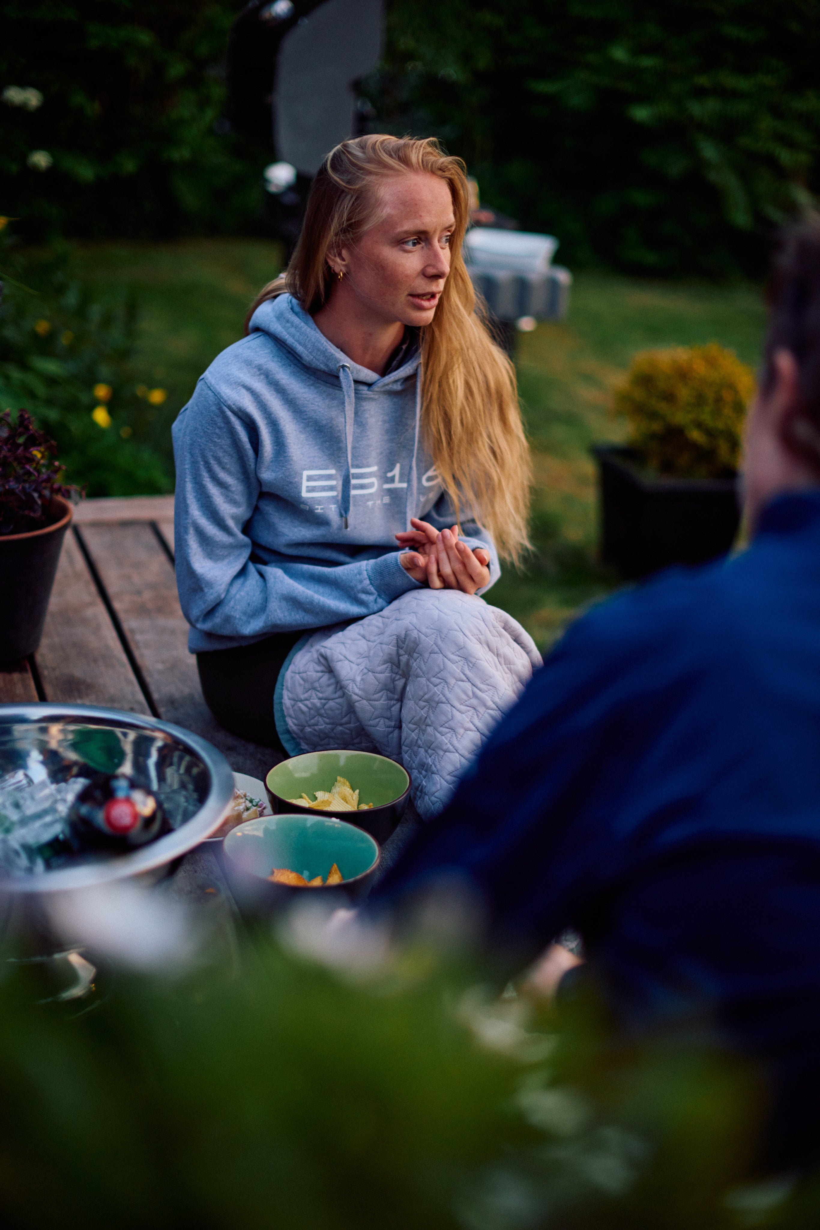 Tröjan har en känguruficka som går ner över ribben, vilket gör fickan lite större och ger tröjan en fin detalj som du inte ser på våra andra sweatshirts. Fickan och ficköppningen är sydda med flatlock. Det finns förstärkningar upptill och nedtill i ficköppningen för att göra fickan starkare.